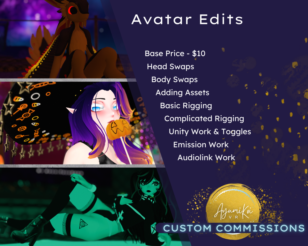 I can do many things from Avatar Edits to Custom Avatars whether it be kitbashing or something truly custom to the heart of your desires!
