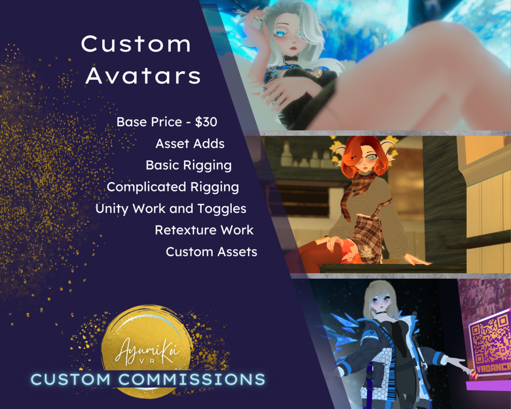 Attention all VRChat users! Are you looking for a unique and personalized avatar to stand out in virtual reality? Look no further! I am offering custom VRChat Avatar commissions at cheap and competitive prices. Whether you have a big or small vision in mind, I am here to bring it to life. No commission is too big or too small, so why not let your imagination run wild? Trust in my expertise to create the perfect avatar that represents you in VRChat. Get in touch today to start your journey towards a one-of-a-kind virtual presence!